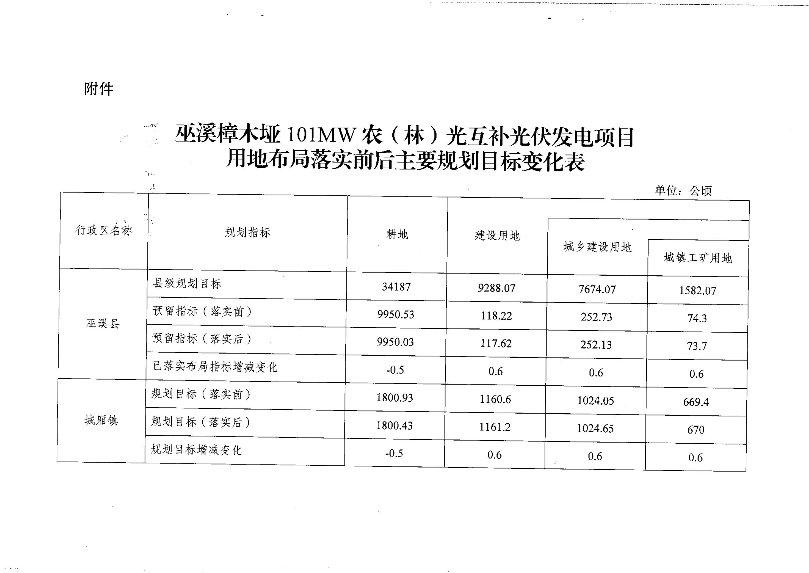- 重庆市规划和自然资源局关于巫溪樟木垭101MW农(林)光互补光伏发电项目用地土地利用总体规划符合性审查的意见
