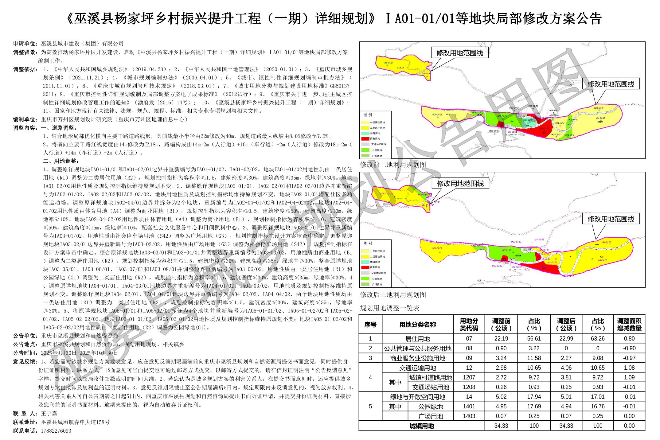 巫溪县杨家坪乡村振兴提升工程(一期)详细规划方案公告