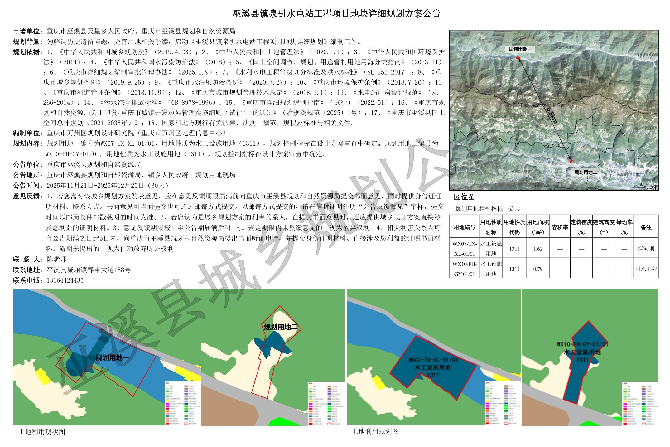 巫溪县镇泉引水电站工程项目地块详细规划方案
