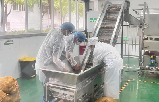 ▲图为大学生在绿盛源食品有限公司体验生产过程