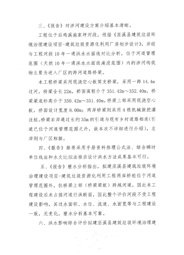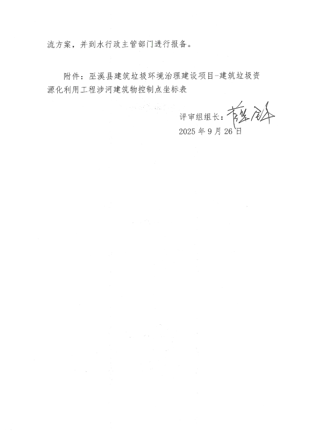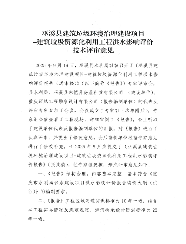 附件:1.巫溪县建筑垃圾环境治理建设项目-建筑垃圾资源化利用工程洪水影响评价技术评审意见