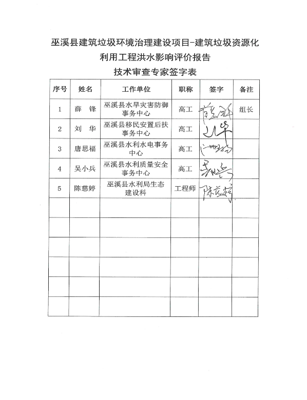 2.巫溪县建筑垃圾环境治理建设项目-建筑垃圾资源化利用工程洪水影响评专家签字表