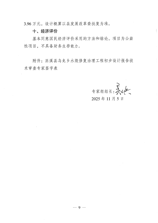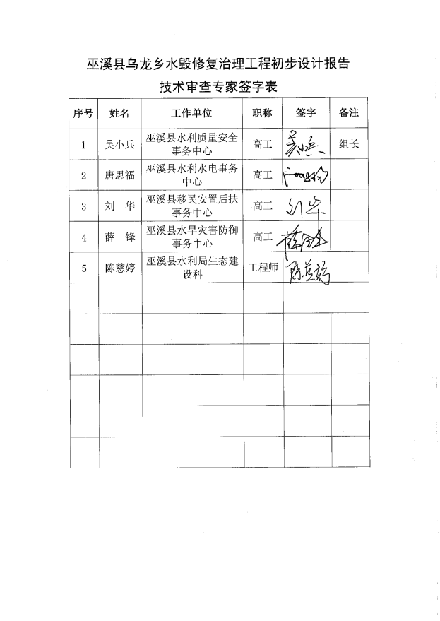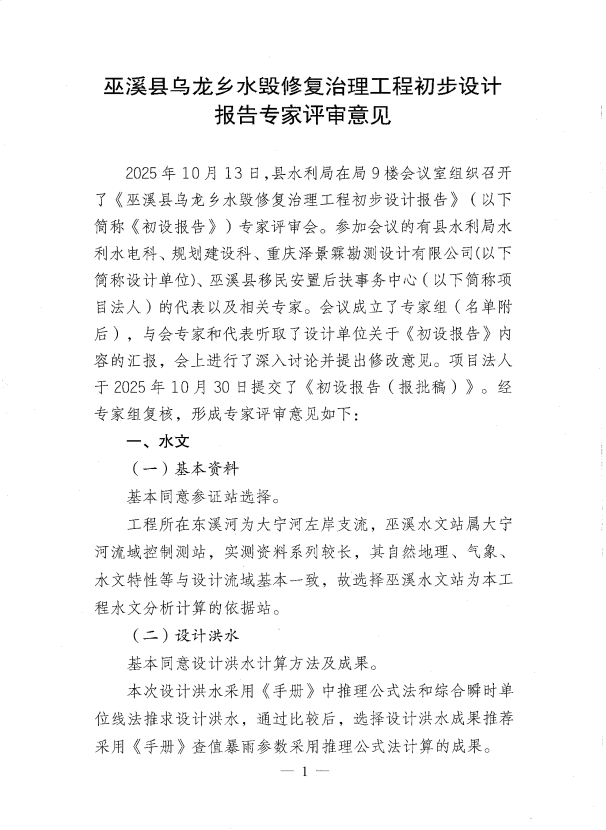 附件:巫溪县乌龙乡水毁修复治理工程初步设计报告专家评审意见