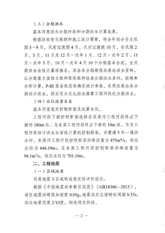 你中心《关于审批巫溪县乌龙乡水毁修复治理工程初步设计报告的请示》(溪移民安置文〔2025〕19号)和工程(项目代码:2508-500238-04-05-249504)初步设计相关材料收悉。根据《中华人民共和国行政许可法》第三十八条第一款、《水行政许可实施办法》第三十二条第一项,结合专家组技术审查意见,经研究,现准予行政许可如下: