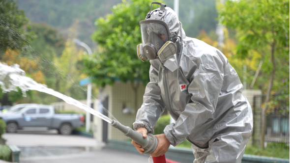 15时,演练正式启动。重庆市渝东水务有限公司巡查人员发现盐酸储蓄罐附近盐酸泄露,公司迅速启动应急预案开展先期处置并报告主管部门。县生态环境局立即启动Ⅳ级应急响应,并按照《重庆市巫溪县突发环境事件应急预案》成立现场指挥部,下设综合协调组、应急处置组、应急监测组、秩序维护组、信息舆情组、供水保障组共6组。应急处置采取沙袋封堵、消防沙吸附等方式阻断污染源向下游扩散,无人机协同作业稀释事故区域废水、有毒气体等二次污染,并动态监测周边水质和空气。在指挥部的统一调度下,事故得到有效控制。