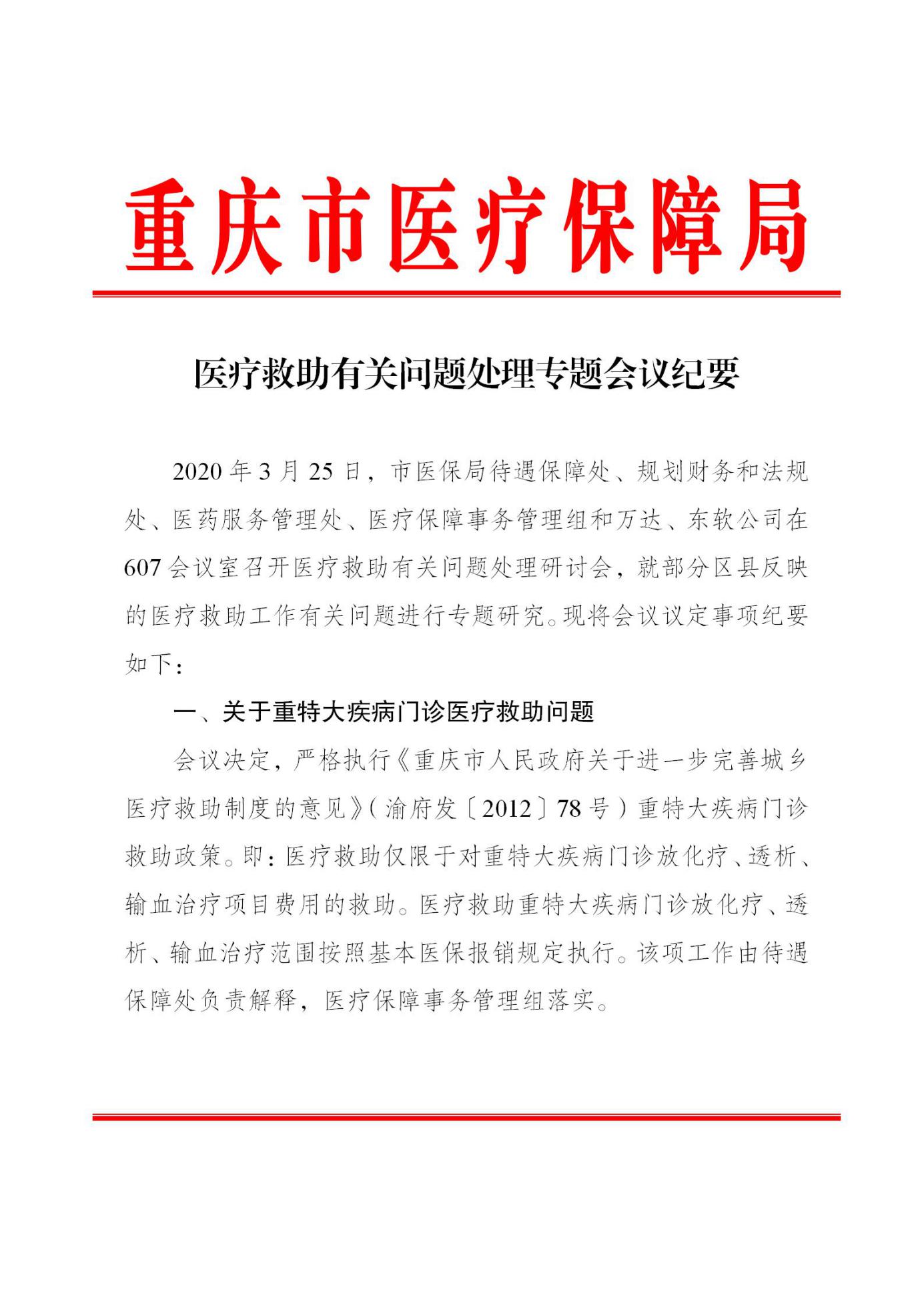 附件:1.重庆市医疗保障局医疗救助有关问题处理专题会议纪要;