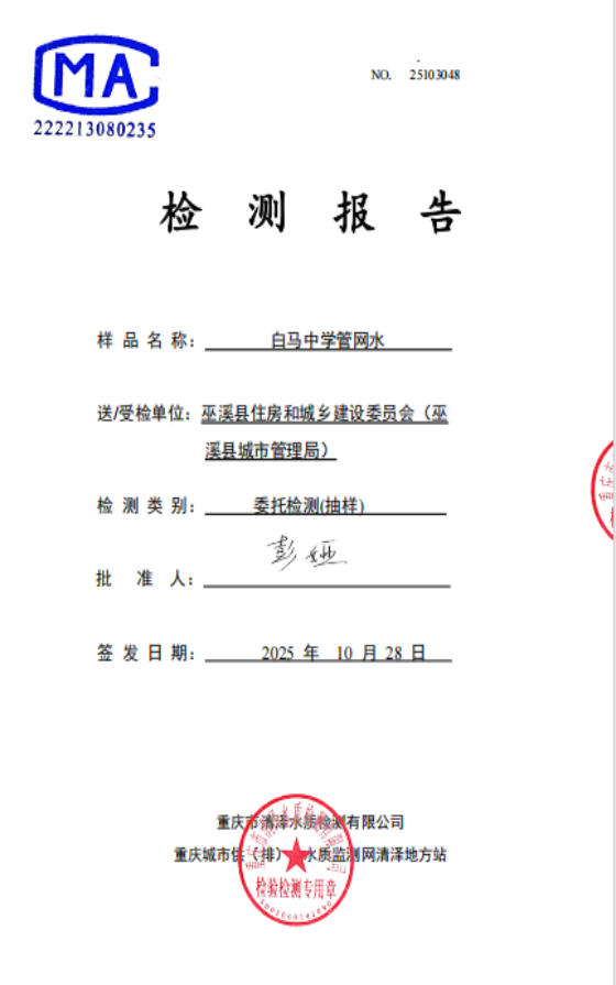 巫溪县白马中学管网水水质监测点 |