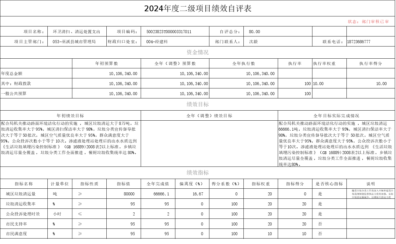 根据预算绩效管理要求,我部门有两个二级项目开展了绩效自评,涉及财政拨款项目支出资金1167.62万元,自评完成情况良好,附表详见报告最后附件。