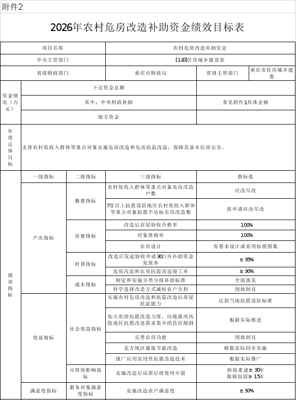 2.2026年农村危房改造补助资金绩效目标表