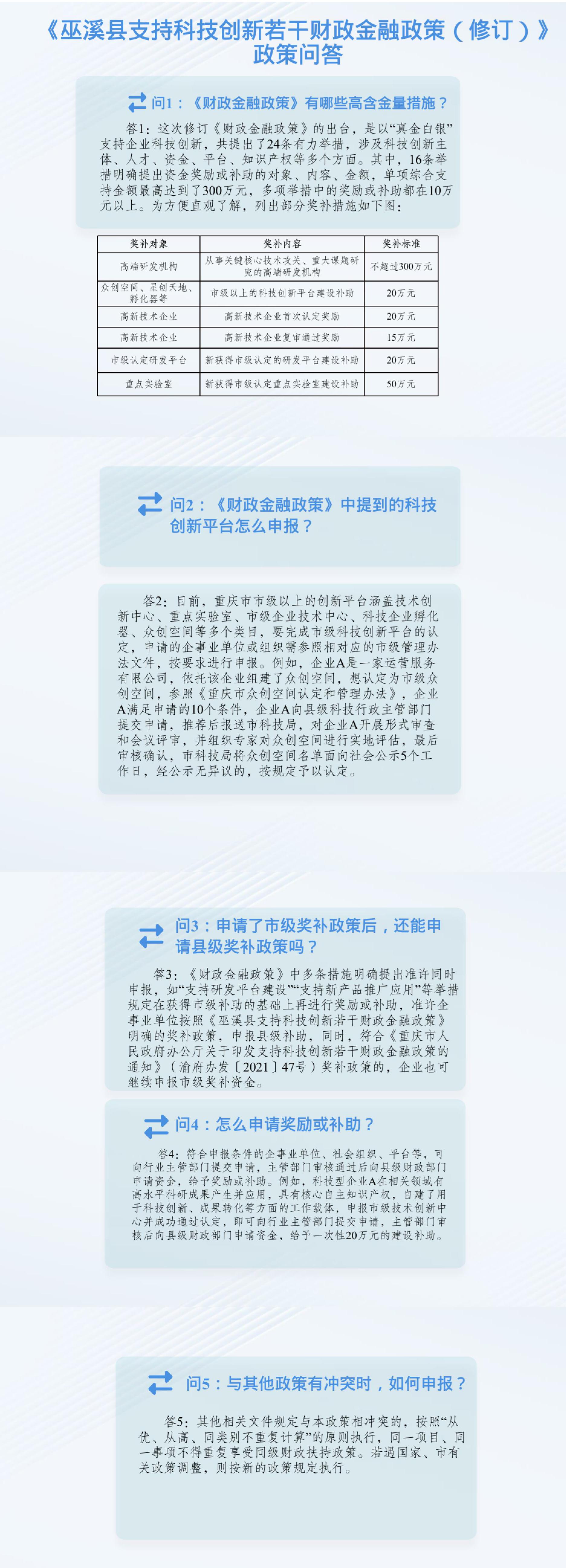《巫溪县支持科技创新若干财政金融政策(修订)》政策问答