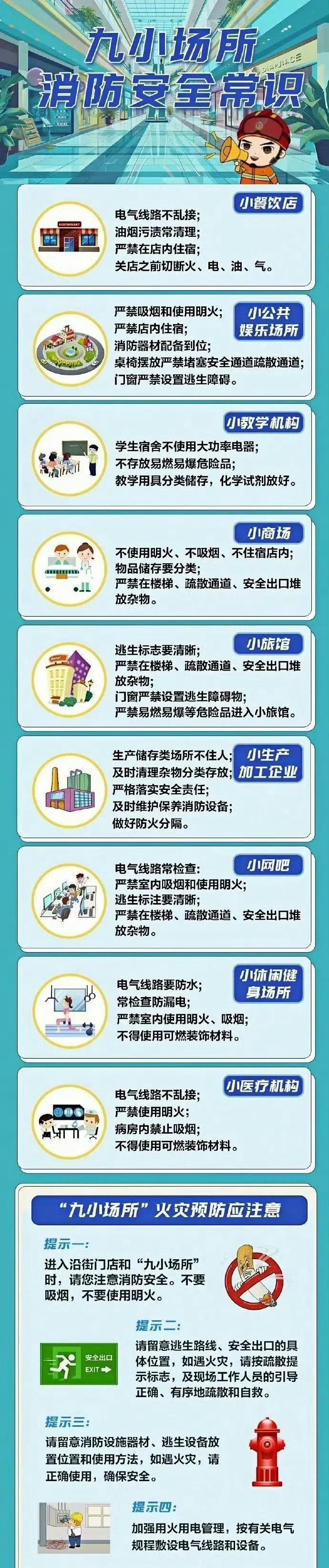 “九小场所”有哪些常见的消防安全隐患? 应该如何做好火灾防控工作?这份“九小场所”消防安全常识,快转发给亲朋好友一起学习吧!