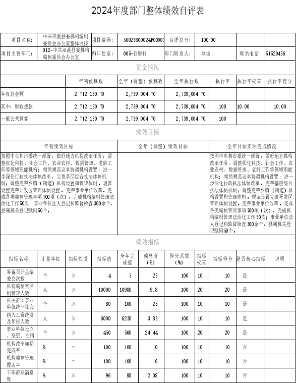 单位:中共巫溪县委机构编制委员会办公室(本级) |
