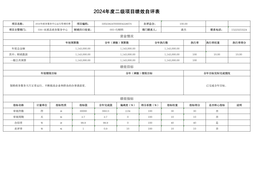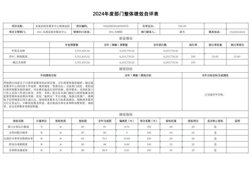 附件:1. 2024年度部门整体绩效自评表