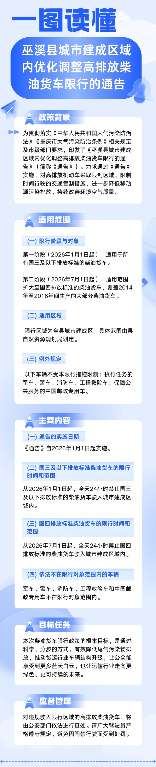 【一图读懂】《巫溪县城市建成区域内优化调整高排放柴油货车限行的通告》