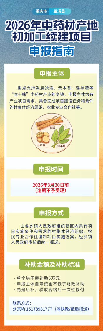 【申报指南】巫溪县2026年中药材产地初加工续建项目申报指南