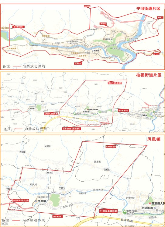 柏杨街道片区:东至碧水雅苑小区,南至巫溪县渝溪花栗加油站,西至S102凤凰镇界牌,北至城厢镇城北村北侧村域边界线。即红线内所含的柏杨街道,城厢镇城北村、杨家村、白新社区部分区域。(详见图示区域)