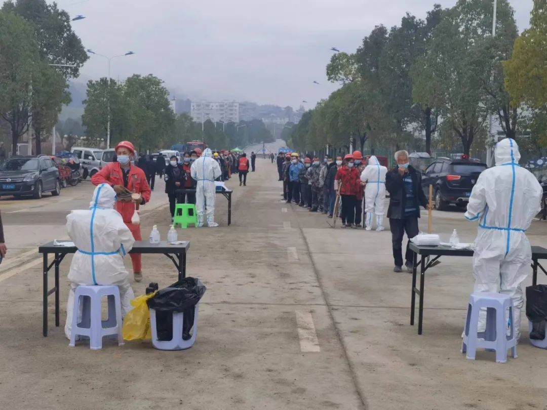 “一定不负所托,一定交出一份满意答卷!”县规划自然资源局主要负责人用已经嘶哑的嗓子,时而协调相关单位紧急采购所需物资,时而给各施工组分析建造思路,现场解决建设过程中存在的困难和问题,心系施工进度、质量安全的他,不停穿梭于方舱各区域,每日步行破2万;负责总体设计的谭玲瞪着通红的双眼,和同事交接水、电等建设安排,并直接将帐篷搭建在施工现场。尖山方舱医院建设现场无分昼夜,24小时不间断施工,挖掘机、运输车、叉车、吊车阵阵轰鸣,指挥调度的声音不绝于耳,整个施工现场火热繁忙又井然有序。