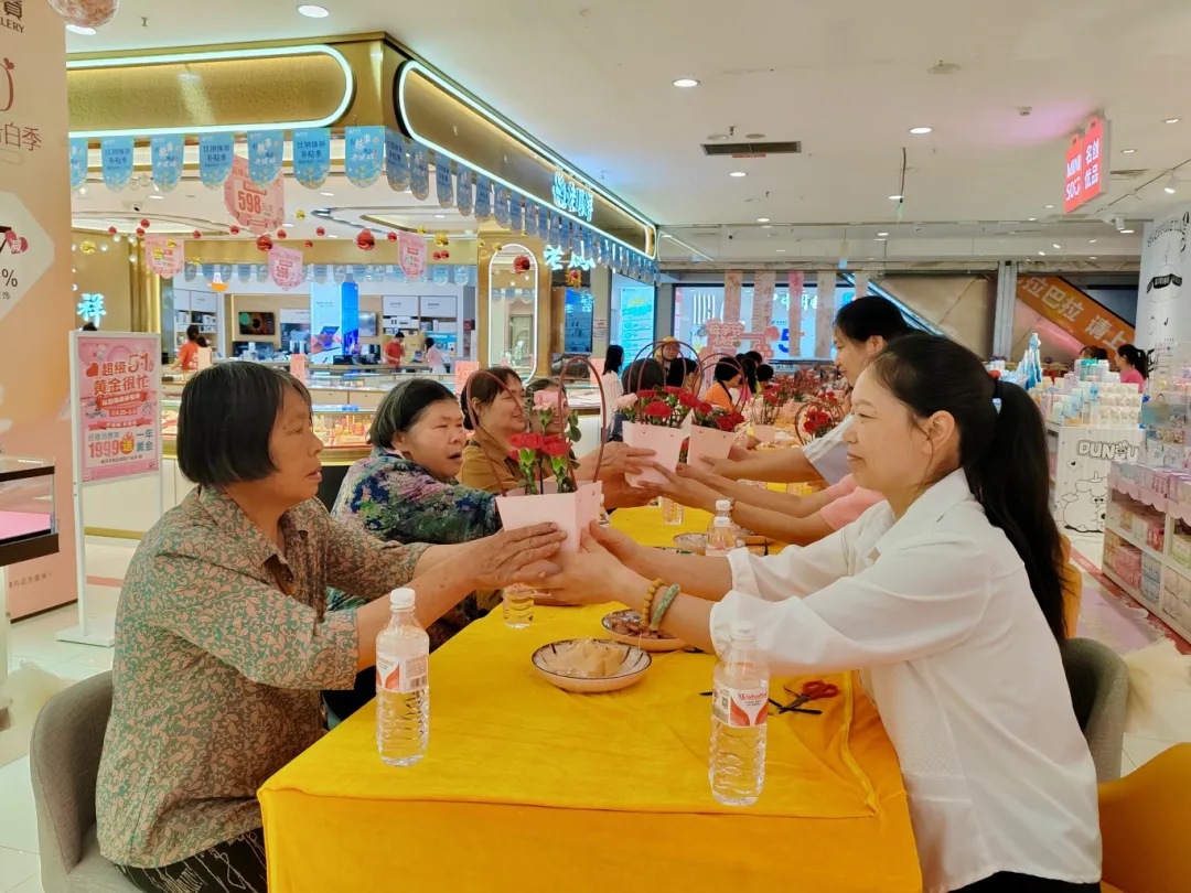 上午10时,在新世纪巫溪商都店的“母亲节”主题活动现场,工作人员献上了爱意满满的手势舞,一对对母亲与孩子一同坐在桌前,孩子们将亲手制作的花束送给母亲,并勇敢地站出来,用纯真的声音表达着对妈妈的深情爱意。一句句真挚的话语,浸润了在场妈妈们的心田,也传递出对母亲的深深祝福与感激。