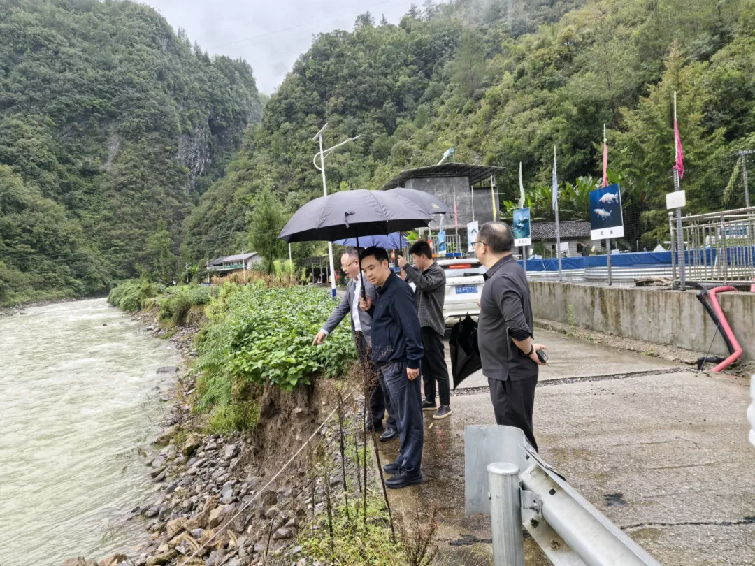 县水利局主要负责人带队查看雨情水情。县水利局/供图