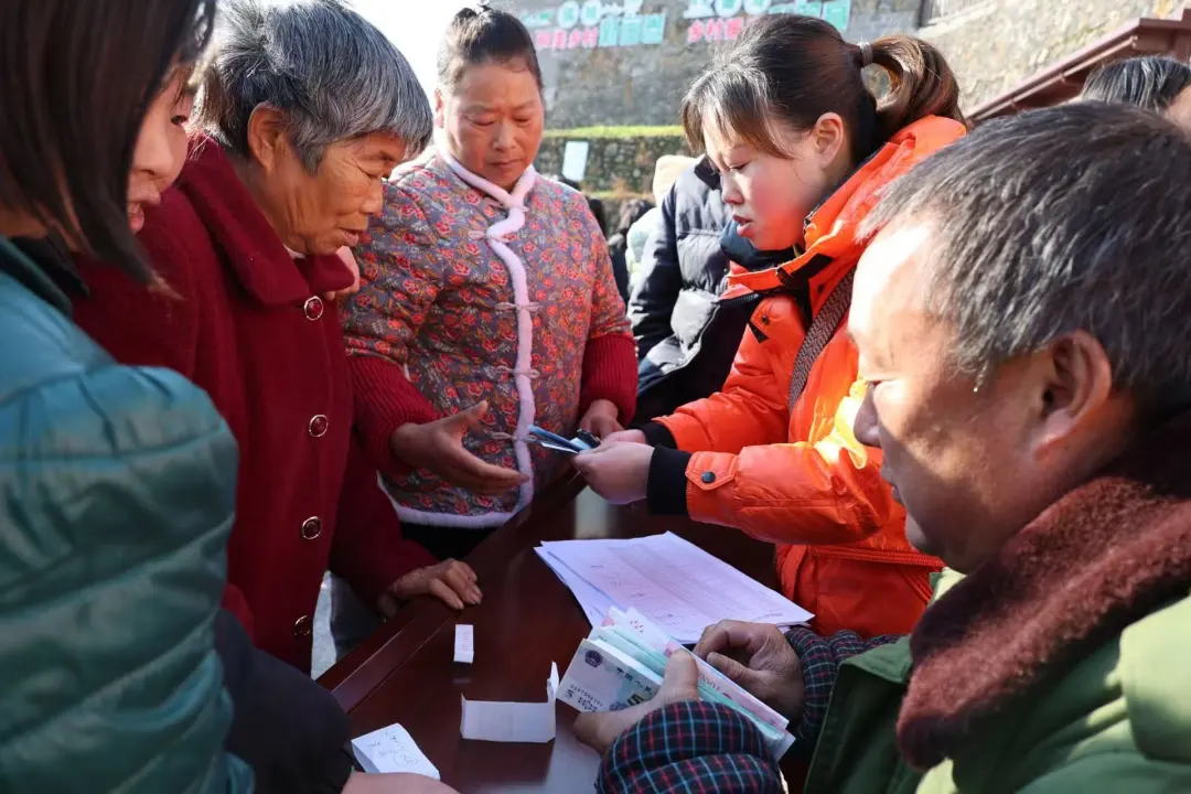 分红大会现场气氛热烈,村民们笑容满面,依次在分红领取表上郑重签下自己的名字,接过崭新的现金。对于莲花村的许多村民来说,这是他们作为村股份经济合作联合社“股民”身份,第一次拿到集体经济的分红。虽然钱拿在手里不算厚,但心里却感到格外踏实和温暖。