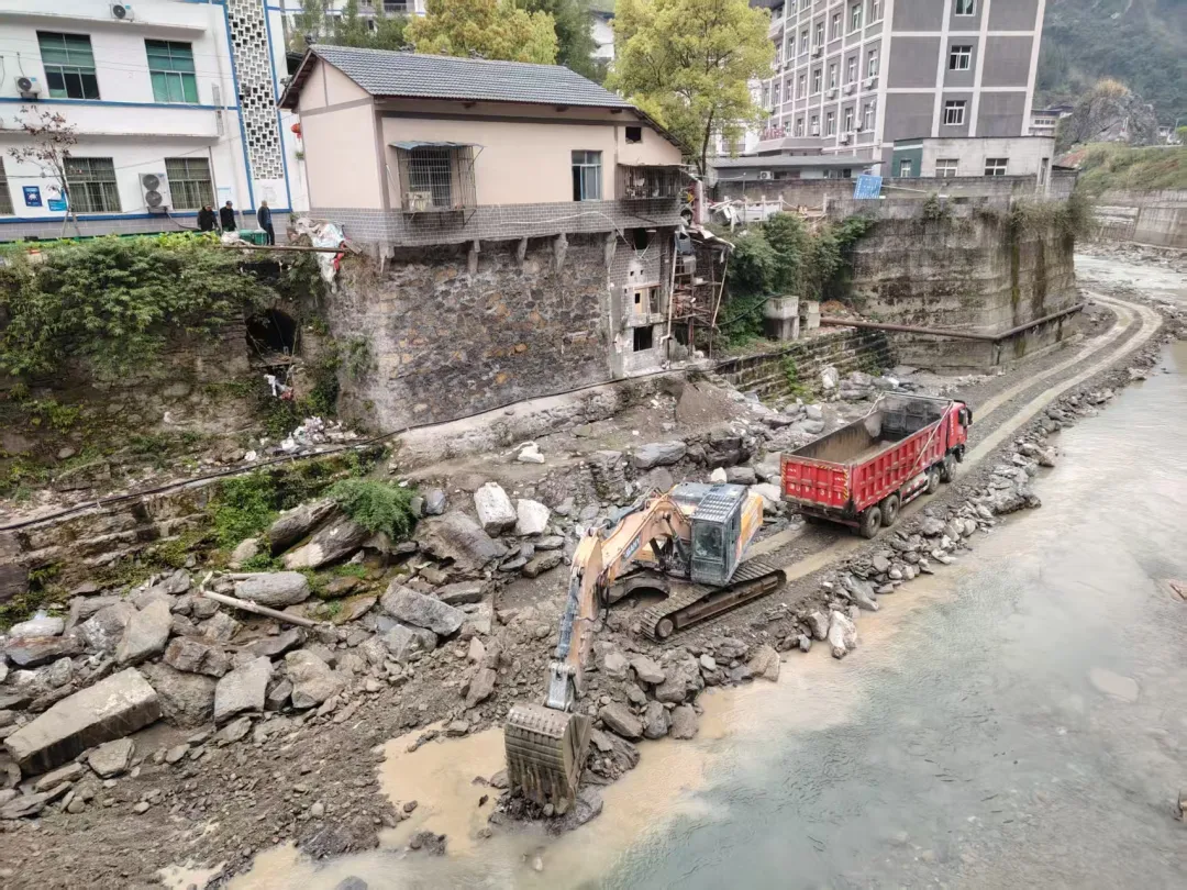 谁能想到,如今水清岸绿的湾滩河,曾是让沿岸群众“谈洪色变”的隐患河。田坝镇地处山区,湾滩河田坝场镇段两侧冲沟密集、地势陡峭,本就是巫溪县防汛重点区域。2024年“7·11”洪灾更是雪上加霜,强降雨引发的泥石流裹挟大量砂石、淤泥涌入河道,导致河床抬高、行洪断面大幅缩减,部分河段淤积厚度达两三米。每到夏季汛期,河水极易漫过堤岸冲进居民区,一楼家具电器被浸泡、物资被冲走是常事,群众财产损失惨重,日夜悬心。