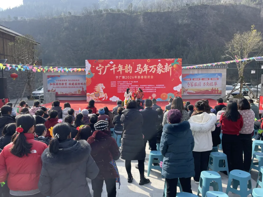 2月10日,“宁厂千年韵 马年万象新”——宁厂镇2026年新春联欢会在兴隆村新时代文明实践站圆满举行。活动通过歌舞、小品、民俗表演等多种形式喜迎农历马年,展现全镇干部群众团结奋进、昂扬向上的精神风貌。
