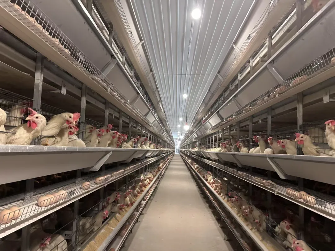 在上磺镇青庄村的养殖场内,一排排叠式鸡笼整齐排布,数万羽蛋鸡精神抖擞,饲养员穿梭其间,细致巡查鸡群的健康状态和产蛋情况,此起彼伏的“咯咯”鸡鸣,让的静谧山村充满生机。与传统养殖“脏乱差”的印象截然不同,养殖场内自动化喂料、集蛋设备高效运转,工人们熟练地分拣、装箱工作,智能养殖的优势在这里得到充分彰显。