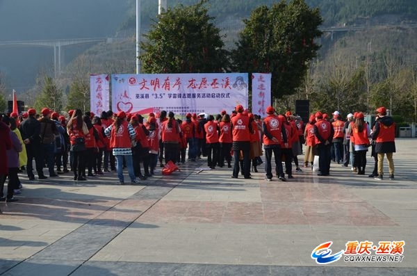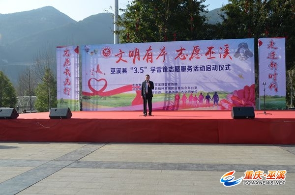 志愿者代表金小英向全体市民发出倡议,弘扬正能量,传递时代强音,传播新风尚,主动参与服务,唱响主旋律,创建文明城市,积极行动起来,向雷锋同志学习,与雷锋精神同行,从自身做起、从现在做起、从小事做起,共同建设文明、和谐、美丽的新巫溪。