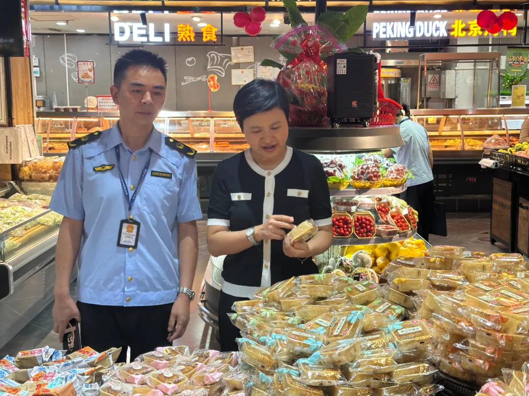 在我的家生活超市,廖丹重点检查了粮油、蔬菜、肉禽、月饼等生活必需品和节日热销品的供应储备、标识标签、保质期管理及储存条件,并详细了解超市食品安全自查、进货查验记录制度落实情况。她强调,国庆、中秋双节将至,商超作为民生保供的重要阵地,必须严把商品质量关,全面落实食品安全管理制度,切实守护人民群众“舌尖上的安全”,让群众买得放心、吃得安心。