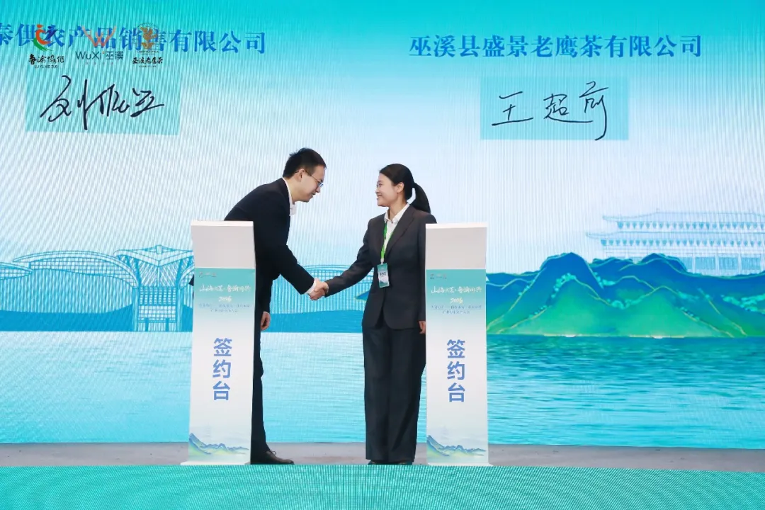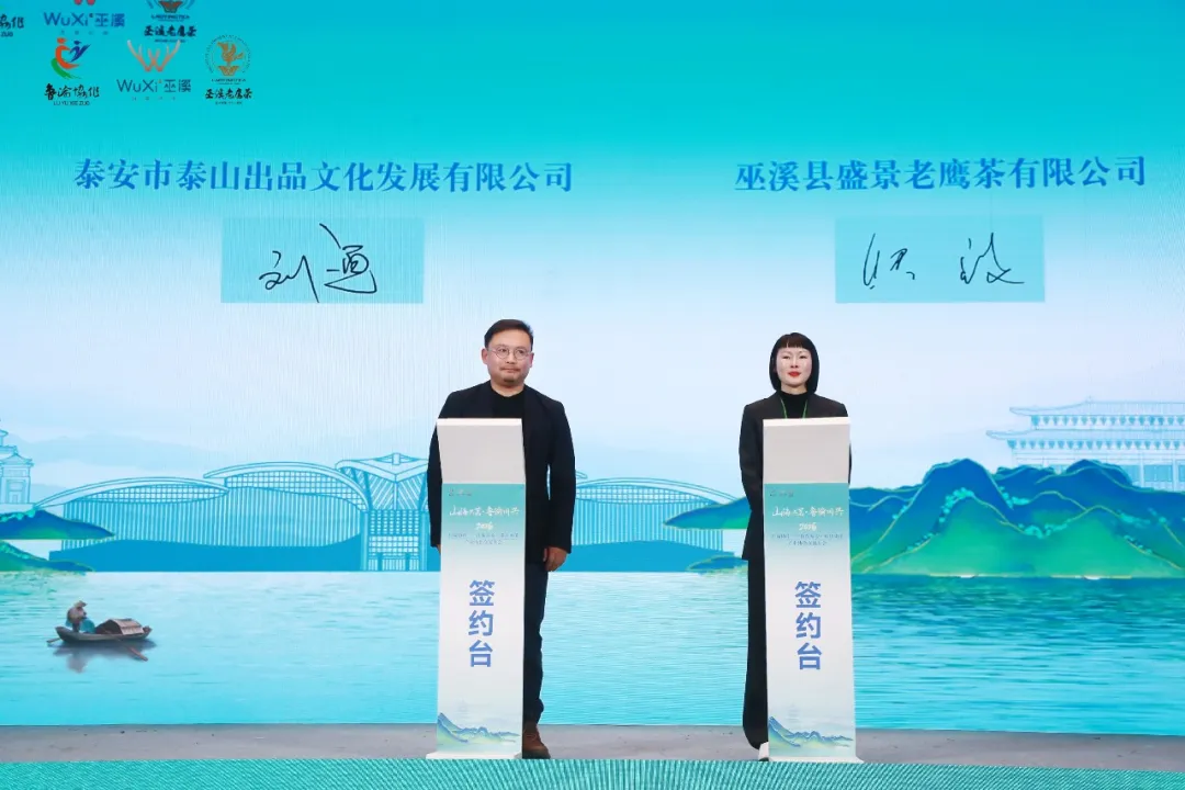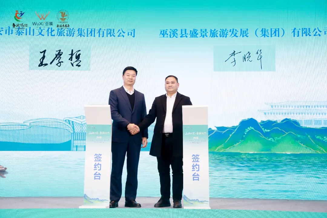 会上,巫溪、泰安两地进行了文旅及特色产业推介,并举行了合作签约仪式。泰安市泰山文化旅游集团有限公司、巫溪县盛景旅游发展(集团)有限公司等7家企业现场签订了文旅战略合作、特色产业巫溪老鹰茶合作、巫溪农特产品渠道入驻协议。