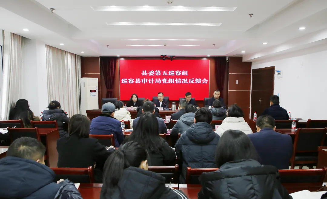 会上,县委第五巡察组主要负责人反馈了巡察情况并提出了意见建议。县审计局党组负责人就巡察整改落实工作作表态发言。
