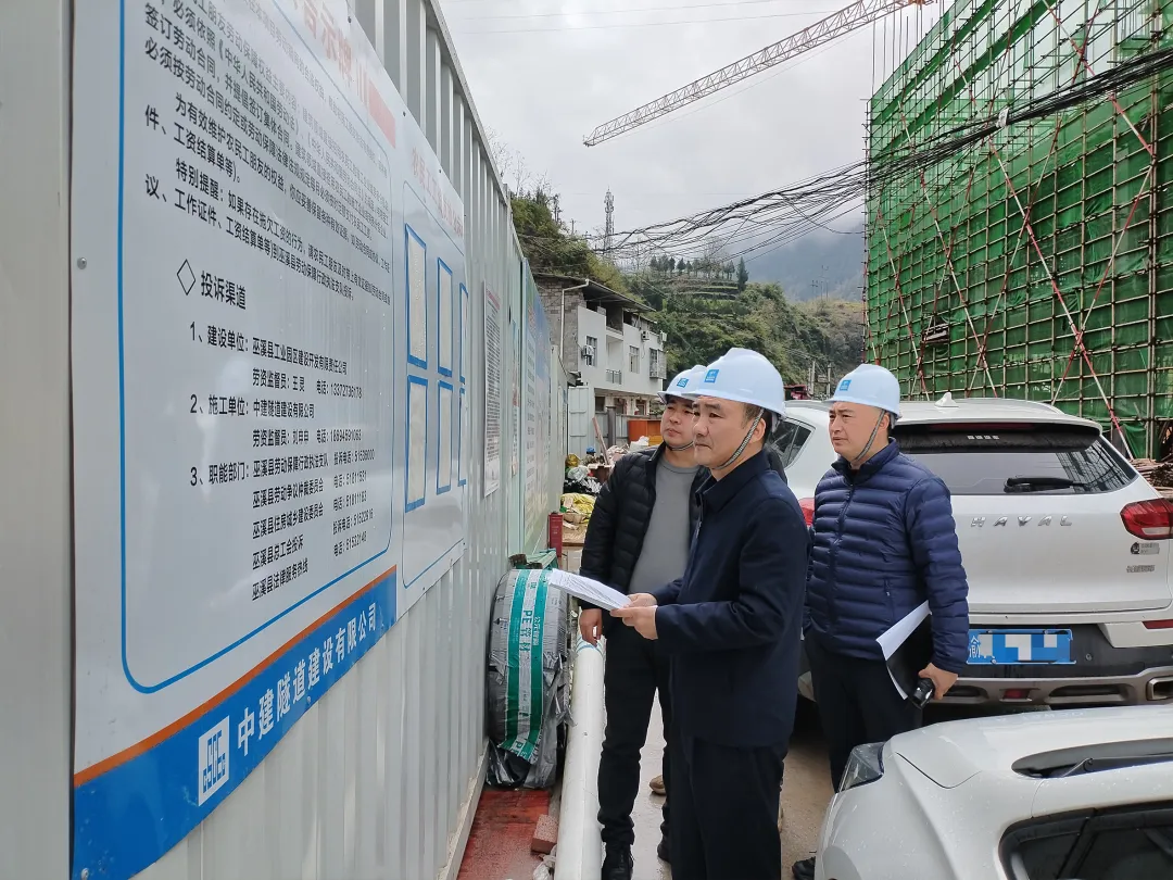 县人力社保局党组书记、局长刘苗青赴中药材精加工仓储、污水处理厂等政府投资及国企项目工地,现场核验“一金三制”及合同签订率落实情况,随机抽查农民工工资支付台账,并向一线工人推广“渝薪码”维权渠道,切实维护劳动者合法权益。