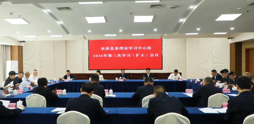 4月16日,县委理论学习中心组举行2026年第三次学习(扩大)会议。县委书记王中主持并讲话。他强调,要深入学习领会习近平总书记关于党的建设的重要思想、关于党的自我革命的重要思想,坚定拥护“两个确立”、坚决做到“两个维护”,持续修复净化政治生态,高质量抓好中央巡视反馈问题整改,为奋力谱写中国式现代化重庆篇章贡献巫溪力量。县委副书记、县政府党组书记贺秀山,县政协主席王芳,县委理论学习中心组其他成员,全体在家县领导参加。