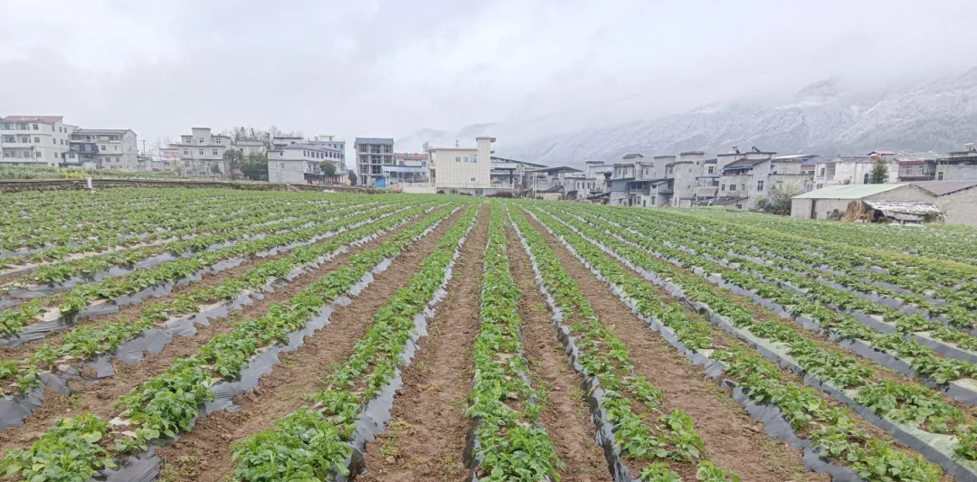 马铃薯生产基地土豆苗被白雪覆盖 通讯员 梁峰铭/摄