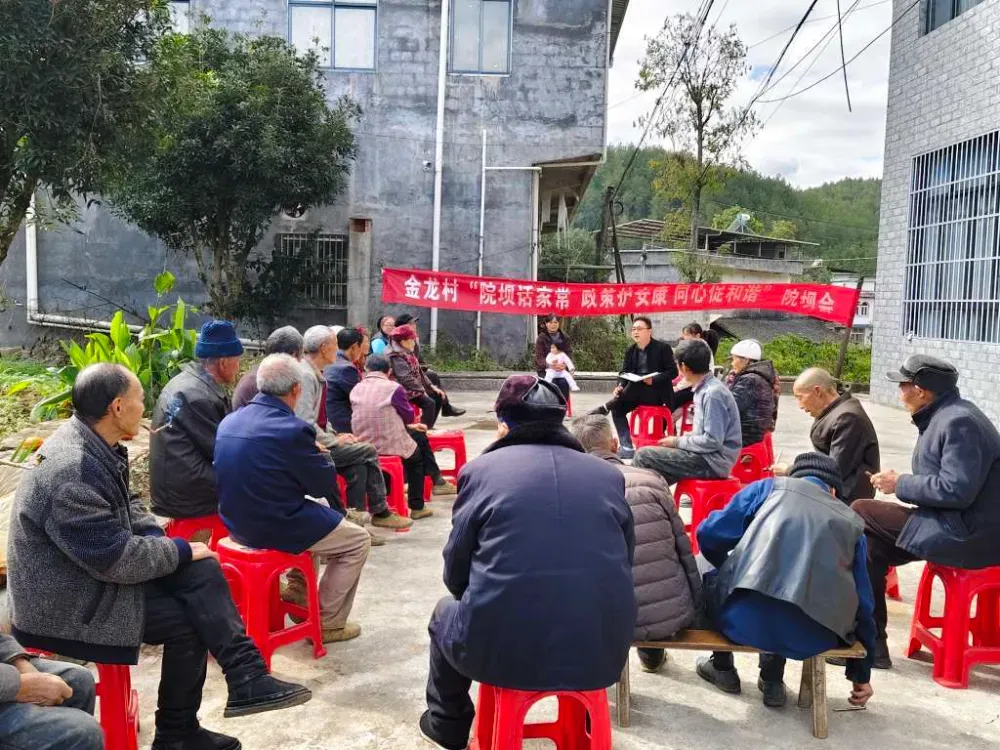 11月11日,塘坊镇新时代文明实践所联合金龙村村委会,以“院坝会家常、政策护安康、同心促和谐”为主题举办院坝会。用“拉家常”的方式解读医保、养老等政策,并认真倾听解答群众在基础设施、产业发展等方面的意见建议和疑问。此次院坝会既让政策“飞入寻常百姓家”,也拉近了干群距离,为共建和谐乡村凝聚了共识。