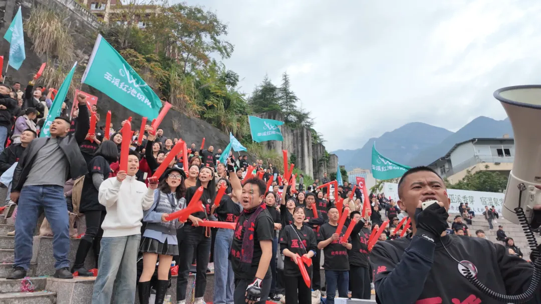 当比赛战幕拉开,看台化作一片澎湃的红色海洋。“巫溪——雄起!”的呐喊如潮水般此起彼伏,与激昂的战鼓声交织,筑起一道无形的声浪高墙。他们用嘶哑的喉咙齐声高唱助威战歌,每一次防守都伴随着震天的“坚守”,每一次进攻都激发出全场的“冲锋”,这九十分钟里他们的声浪从未停歇。
