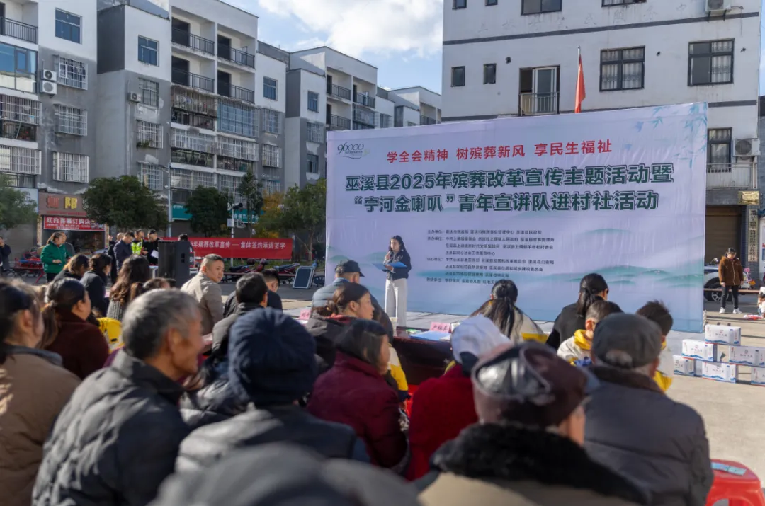 11月19日,2025年“学全会精神·树殡葬新风·享民生福祉”殡葬改革宣传主题活动暨“宁河金喇叭”青年宣讲队进村社活动,在上磺镇羊桥村举行,通过政策解读、案例分析和互动交流,让绿色殡葬理念深入民心,推动厚养薄葬孝道观与健康文明祭祀新风蔚然成风。