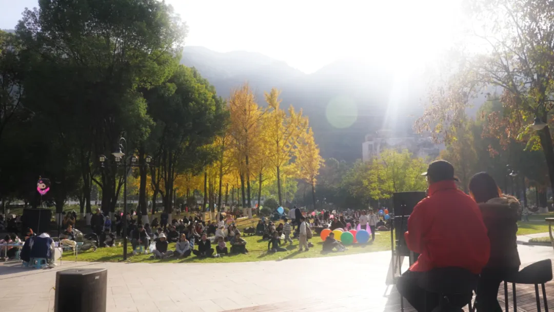 下午两点半,伴随着倾泻而下的温暖阳光,音乐会正式拉开帷幕。流行歌曲、民谣轻音乐等多元曲目轮番上演,旋律或深情婉转,或活力四射,引得观众时而静心聆听,时而随节奏轻轻哼唱。现场观众携家人席地而坐,或邀好友漫步聆听,阳光洒在肩头,旋律萦绕耳畔,惬意氛围感染着在场每一个人。