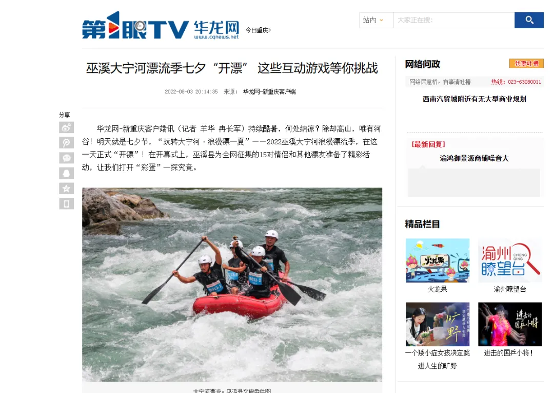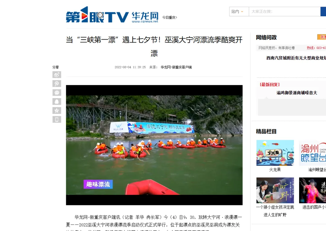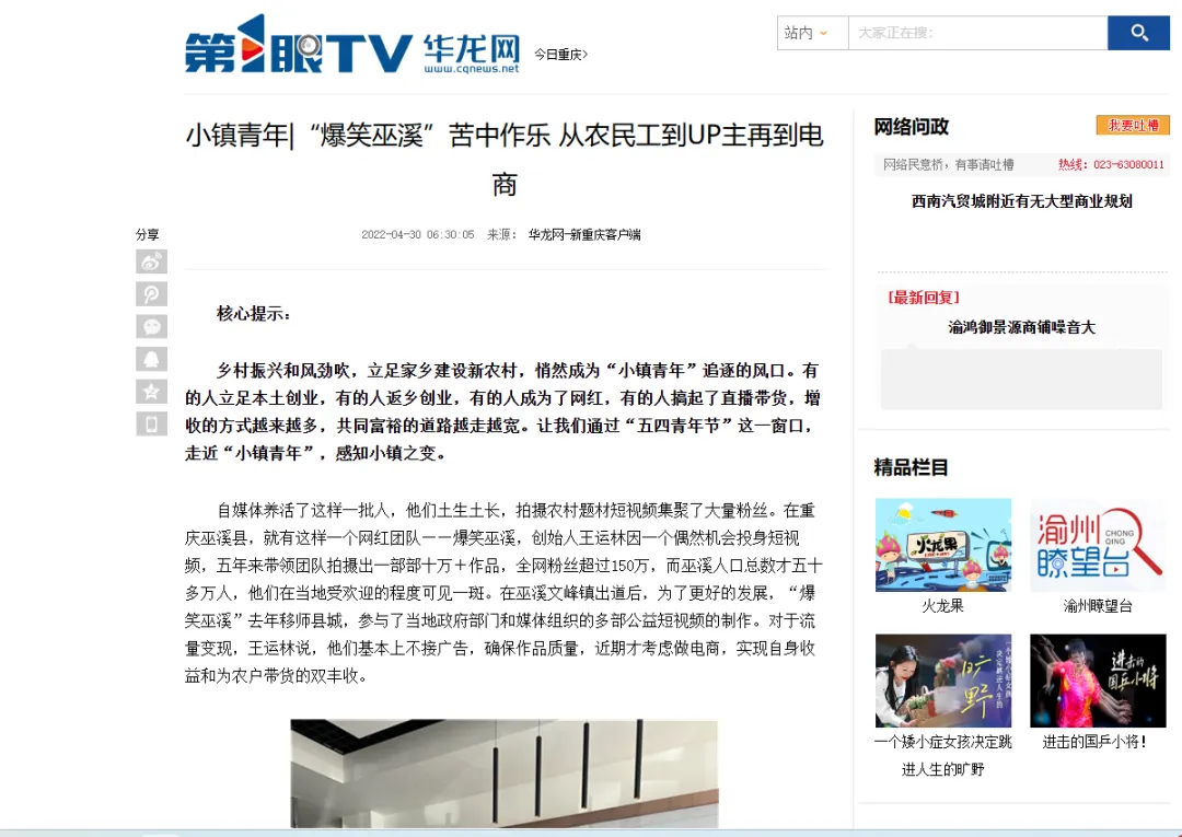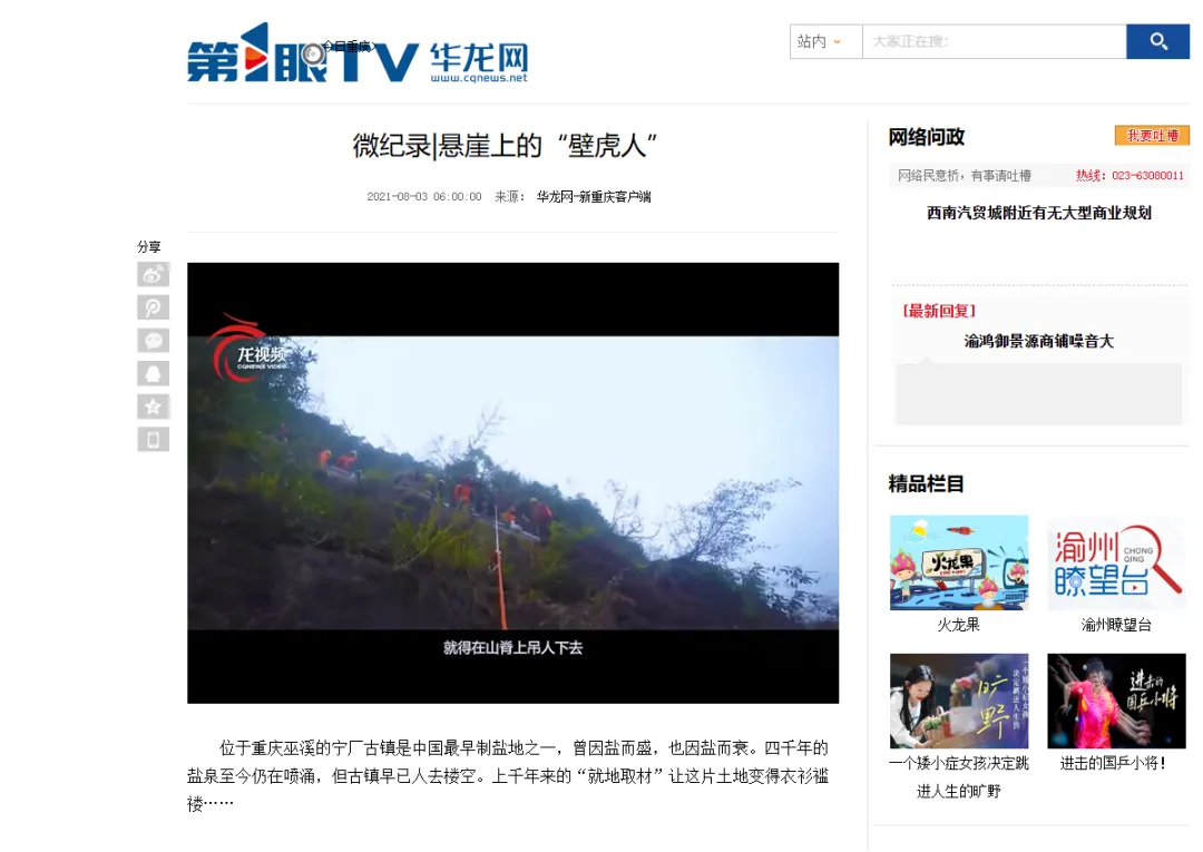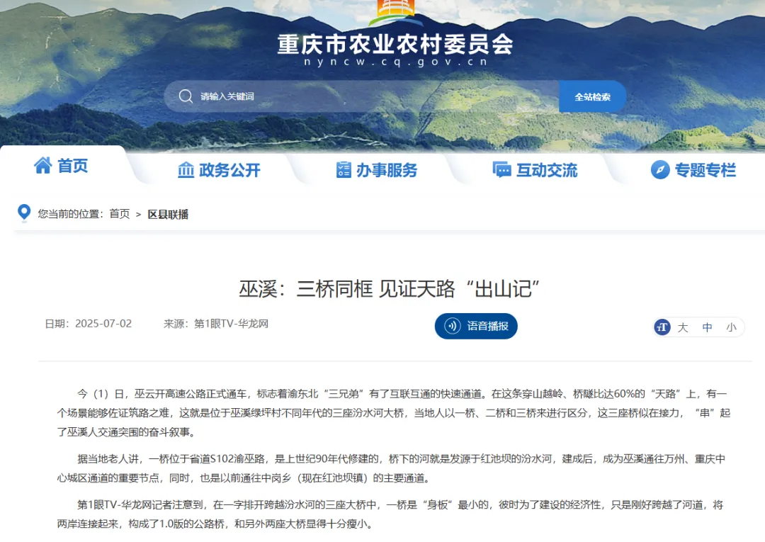第1眼华龙网平台有关巫溪的深度报道部分截图。