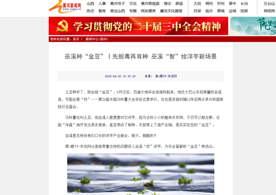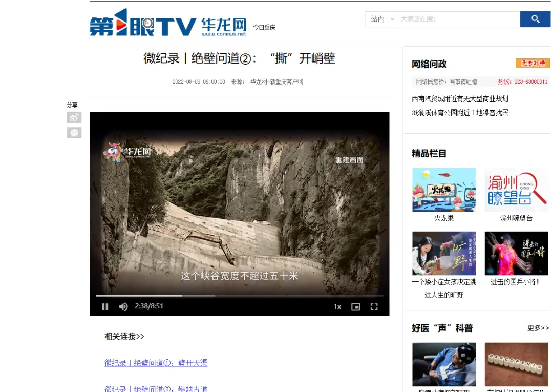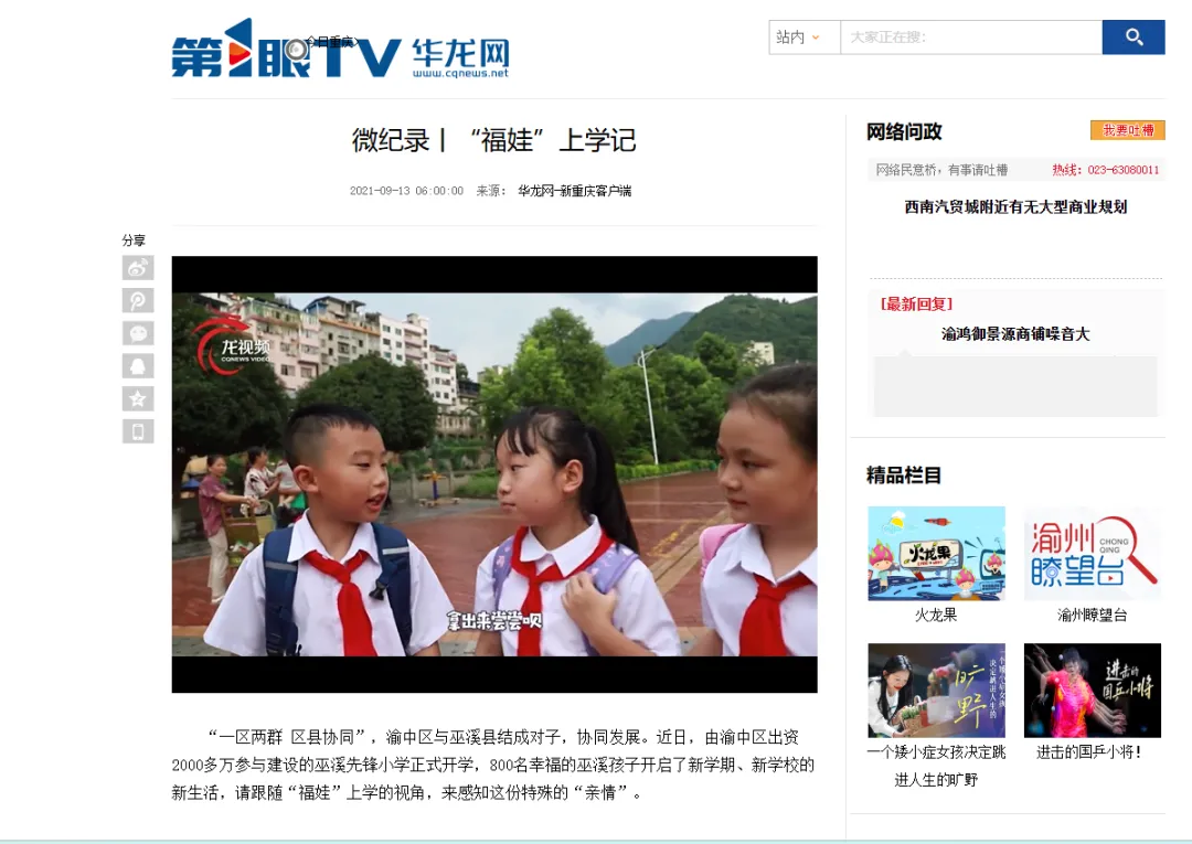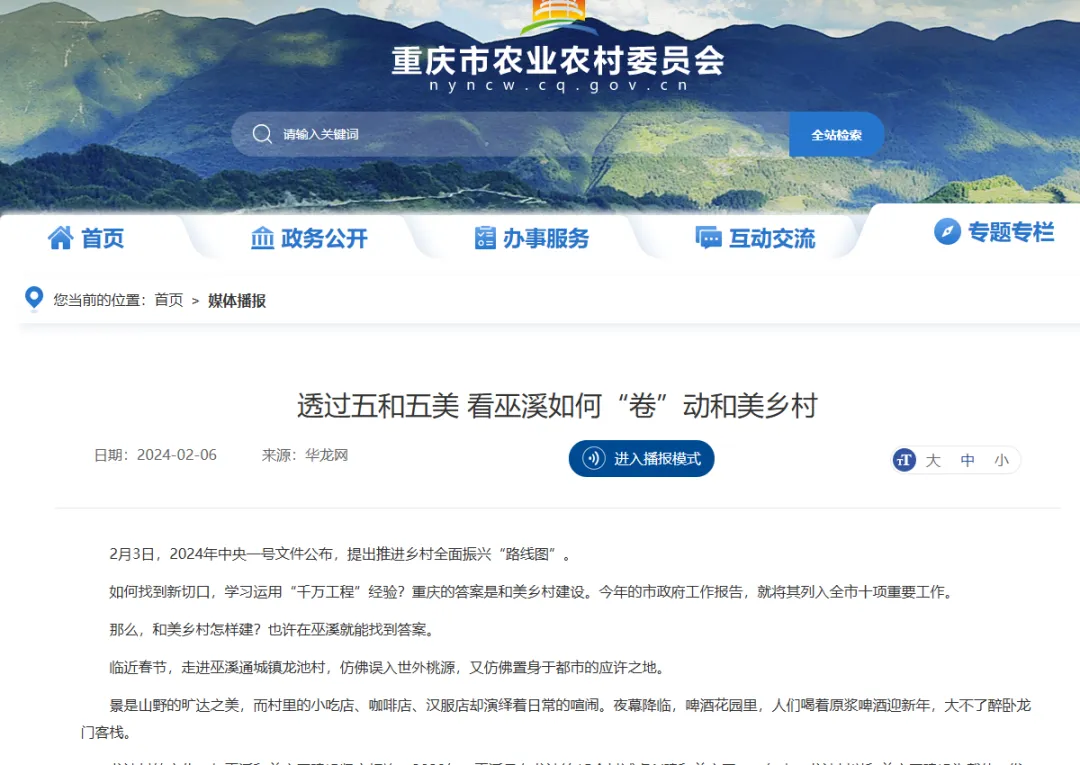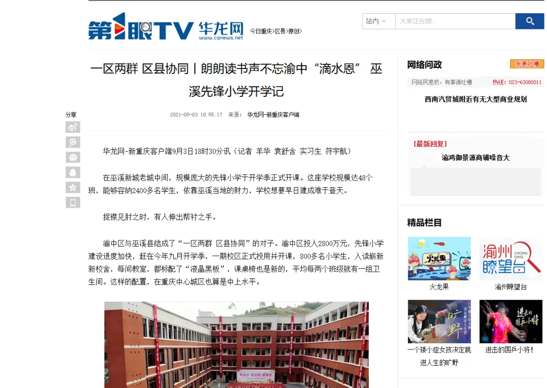 第1眼华龙网平台有关巫溪的深度报道部分截图。