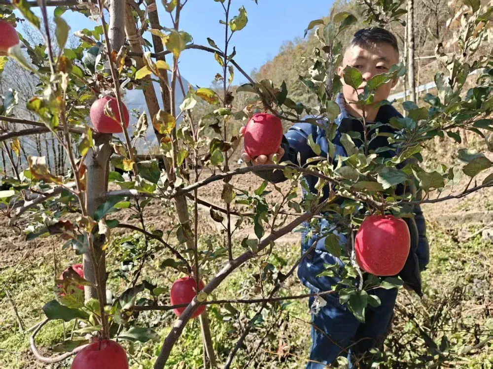 重庆市机关事务管理局驻巫溪县天元乡新华村第一书记周森查看天谷元乡苹果。