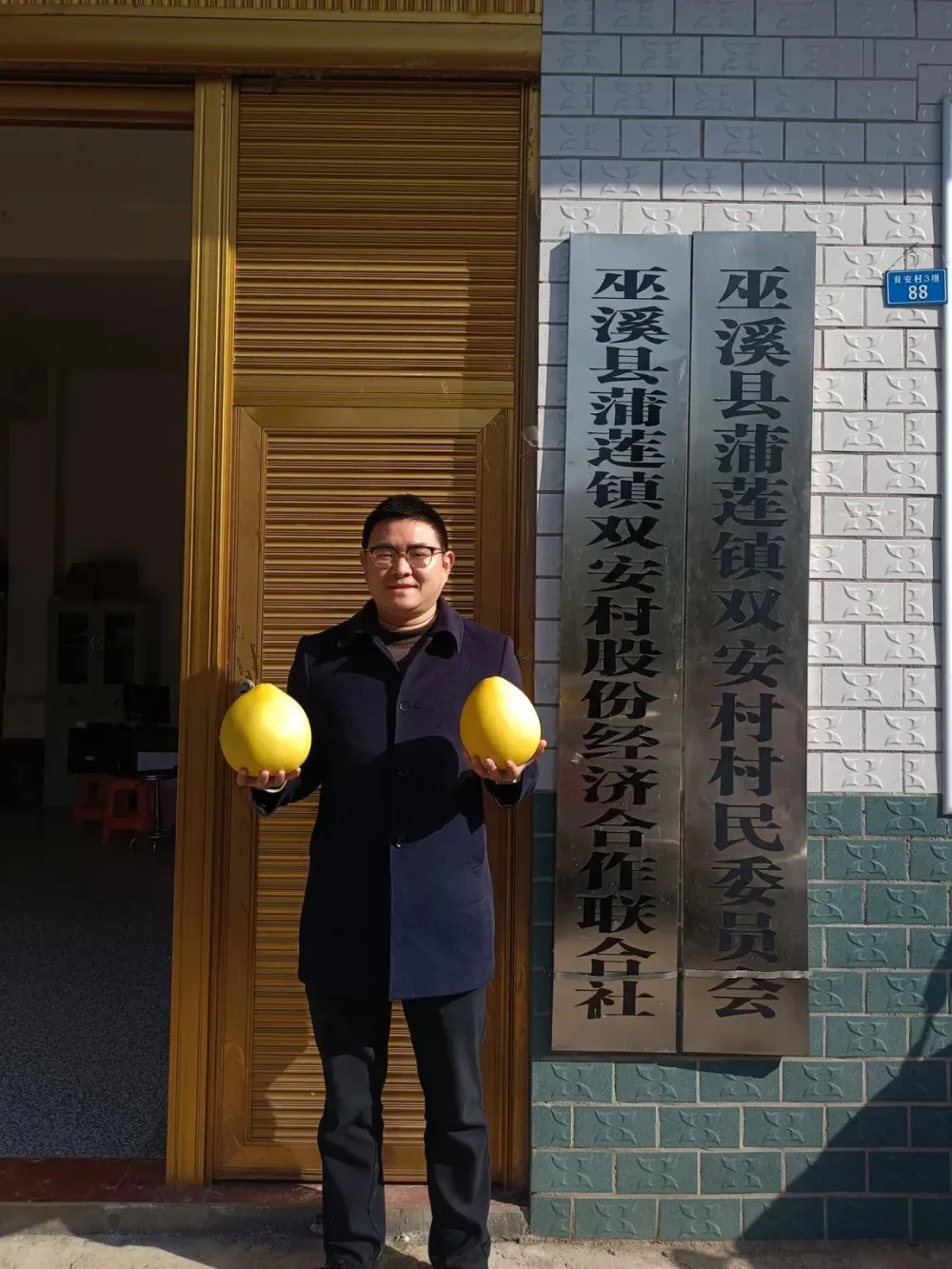 重庆银行驻巫溪县蒲莲镇双安村第一书记谢益推广元河蜜柚。