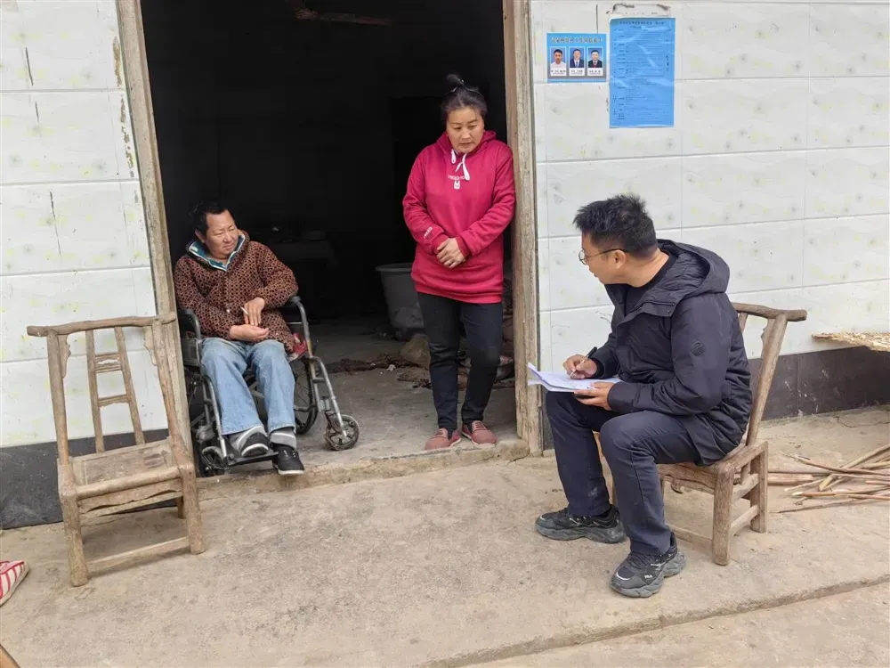 重庆师范大学派驻徐家镇塘垭村第一书记李大彬遍访重点人群,宣传政策并解决实际困难。