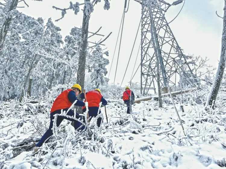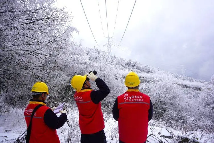 这是周边2万多名群众春节用电的“生命线”。毛彪喘着粗气对记者说,“前一晚的雨雪让线路覆冰风险陡增,一旦覆冰过重,可能引发断线或接地短路等故障,我们要赶紧到第一个观冰点,下午还有其他任务!”毛彪加快脚步,冰面打滑时,他下意识用砍刀插进雪堆稳住身体,手套上的冰碴簌簌往下掉。