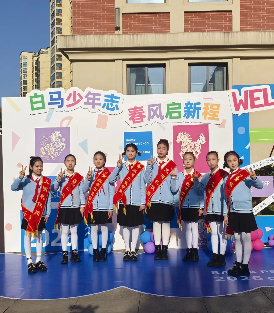 新学期,新起点。我们带着笑容回到美丽的校园,我会认真学习、积极向上,尊敬老师、团结同学,努力养成好习惯,争做文明小学生,在白马小学这片温暖的天地里,快乐学习、健康成长,不负时光、不负期望。