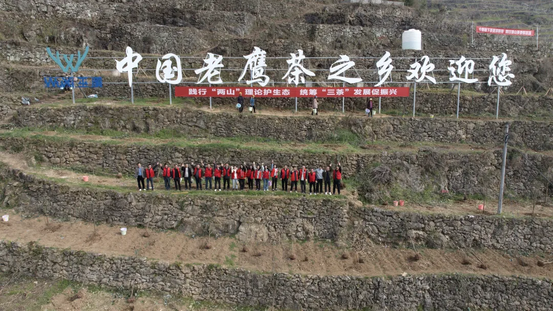 植树现场,一派热火朝天的劳动景象。巫溪县200余名机关干部、群众代表,三五成组,挥锹铲土、扶苗填坑、提水浇灌,共同种下一株株承载着绿色发展希望的老鹰茶树苗。