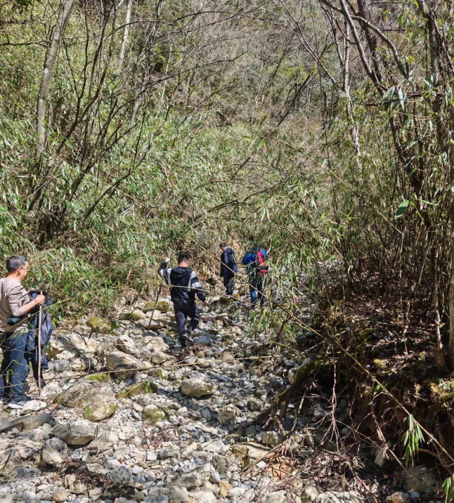 该工程涵盖引水、净水、供水三大板块,供水范围覆盖通城镇高海拔区域及夏布坪康养度假区,地形复杂、山势陡峭。踏勘组采取实地排查与现场研判相结合方式,逐一核查水源分布、可供水量、水质状况及管网布局等关键内容。为精准掌握水源数据,踏勘组徒步6小时穿越无人区,顺利完成2处水源流量复核。