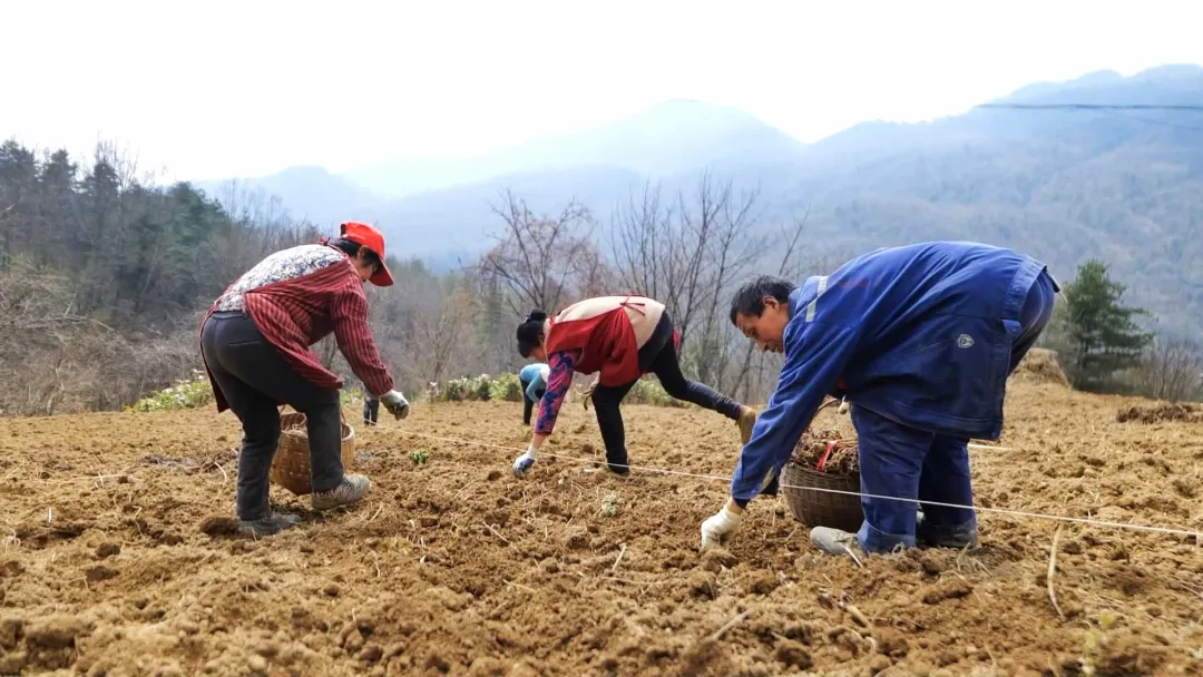 在海拔1800多米的双阳乡七龙村,村民们趁着晴好天气,全面开展独活种植。田间地头,大家翻耕土地、定点打窝、细心栽苗,分工有序、干劲十足。一株株嫩绿的独活幼苗在春风中扎根田野,孕育着新一年的丰收希望。