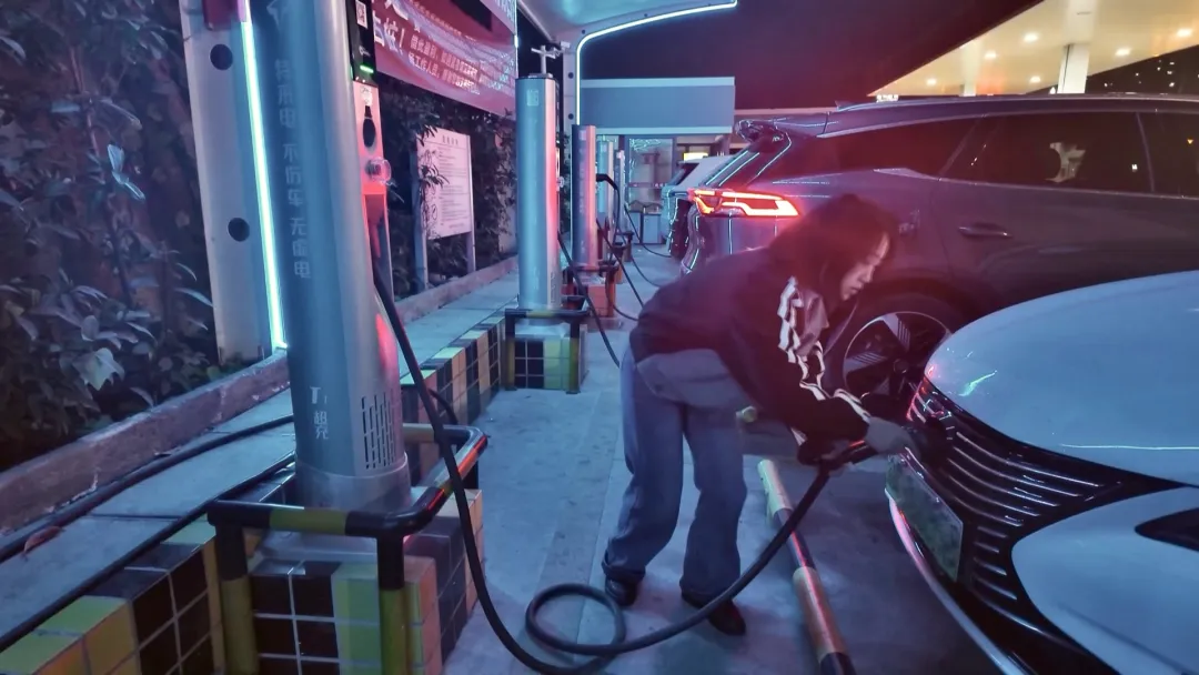 肖乾俊给车辆充电。记者 郭思鲁/摄
