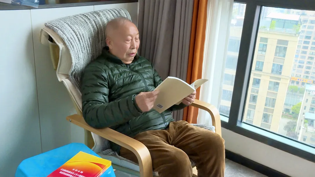 周祚尧在家中看书。